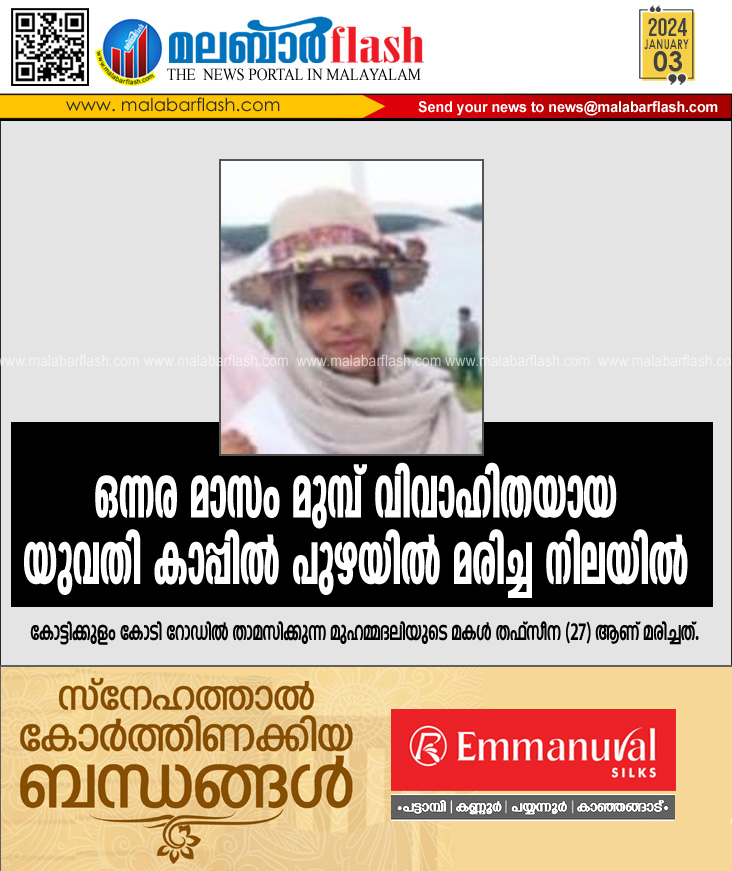 കോട്ടിക്കുളം കോടി റോഡിലെ ഓട്ടോ ഡ്രൈവർ മുഹമ്മദിൻ്റെയും സുബൈദയുടെയും മകൾ തഫ്സീന (27) ആണ് മരിച്ചത്.[www.malabarflash.com]